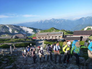 途中、大きなけがをした方がおられ、救助のため白馬大池まで連絡に降りて行った人に出会う。