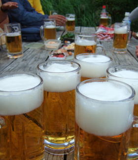ここから小屋はすぐです。 小屋が見えるか見えないかと行ったところで小屋から「お帰り〜」の鐘の音が響きます。「ただいま〜」と言いたくなる小屋です。 早速お茶が皆に振舞われてそのお茶のおいしかったこと!! 小屋の食事まで、もちろん外のテーブルで今回の素晴らしい山行に乾杯です。 小屋の御母さんがあんまり食べないでね。 夕食が入らなくなるから・・・と心配をさせてしまいました。 この船窪小屋の食事は素晴らしいのでファンが沢山居てリピーターの多い小屋です。 |