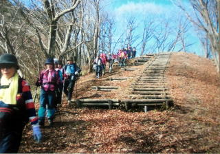 | ≪紀行文≫ 〜〜〜榛名外輪山、自然と湖の展望を楽しむ〜〜〜 日本の略中央に位置する群馬県は南東側に平野が広がり、北西側には上信越国境の山々や関東山地が連なり、その間に赤城山や榛名山、妙義山の上毛三山がそびえています。“榛名外輪山”は自然環境に恵まれ美しい自然と気軽な山歩きが楽しめます。 車で関越道を走り東京に向かうと大きく裾野を広げ、その上部に多くのピークが林立する榛名山(200名山)が正面に見えます。 数ある外輪山の中で相馬山は帰部(かもん)ヶ岳(1449m)に続く第2の標高があります。 榛名山は湖を中心とした古い火山(6世紀末に1回目噴火)、又信仰対象の山で歴史を感じます。 外輪山を歩けば充実した縦走登山になり春はサクラスミレが咲き、初夏にはヤマツツジやレンゲツツジ、夏にはユウスゲ、カラマツソウ、マツムシソウ、キキョウなど草原の花が登山客を癒してくれます。 山行の数日前から未だ12月なのに想定外の大雪が中越地方に降りました。 “榛名山外輪山”もどの位雪が有るのかと思いつつ参加された人も一年を締める最後の会山行となりました。 私自身も何かいつもと緊張感が感じられ、未だ暗い雨の中、駅南に車を走らせました。