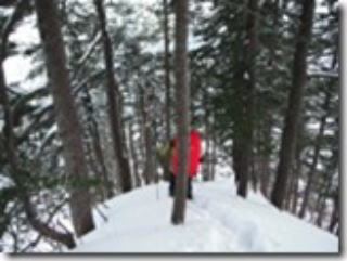 「どうせ稜線までは無理か」風雪のなか、わかんをアイゼンに履き替える辛さも脳裏をよぎる。「もう十分(?)堪能した・・・・」と。