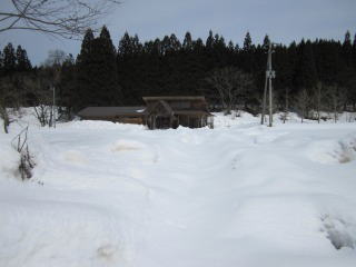 県道を右折すると新谷川沿いの車道は道幅が狭いのですが奥まで除雪が伸びて、アロマ漂う○山牧場の脇を通り三川実習体験館前で除雪