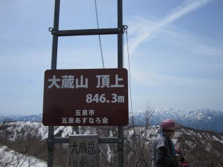 2週間前の会山行・大蔵山には随分積雪があったのですが、今日来てみたら山頂は雪が消え、5合目のブナの芽吹きも済んでいました。 |