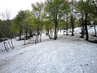 今年はやはり雪が多く、わらび平から先にはべったり雪が着いていました。登山道は雪の下で、ほんの所々でしか見えません。