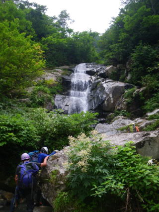 9m2条の滝、さすがにここは登れません。右岸を小さく巻きました。