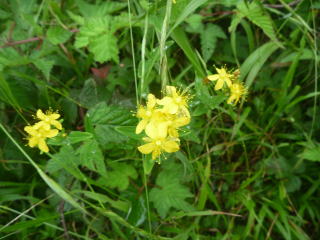 管理人さんの話によると、以前、お花畑にはシモツケの花が一面に咲いていたそうですが、鹿に食べられ、小さな花がポツポツと咲いているだけでした。 最高地点のある大見岳は少し小高くなった木々の中にありました。言われなければ気が付かないかも知れません。標識を見て引き返しました。 |