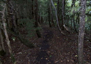 | 昼でも暗い樹林帯の道 | 八間山登山口 | 皇太子殿下の登山記念碑 | ||||||||||
