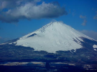 山頂から眺める富士山は雪をたっぷりまとい、美しく、裾野を広げ雄大だ。
