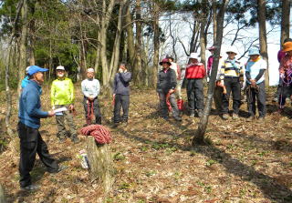 山頂到着し展望を楽しむ間も無く研修がスタート。