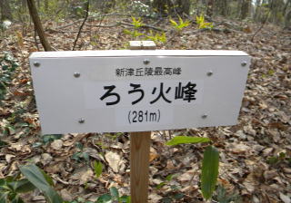 公園からはいきなりの急登で足元がややぬかるんではいたものの、補助ロープ等もあることから参加者の皆さんは苦にもせず、楽しく会話をしながら登っていった。やがて急登も収まり尾根筋に入るとこの山系(新津丘陵)の最高点“ろう火峰(281m)”を通過。