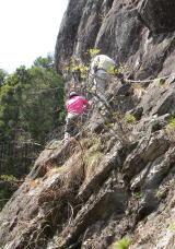弥勒穴に向かうスリル満点絶壁移動 |