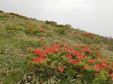 登山靴に履き替えて登山開始です。高度を稼ぐにつれてあちこちに色鮮やかなレンゲツツジが目に飛び込んで来る(カメラに収めるが表現が難しい)。 |