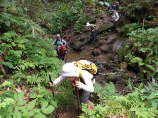 気持ちのいい緑の綺麗なブナ林を登ります。