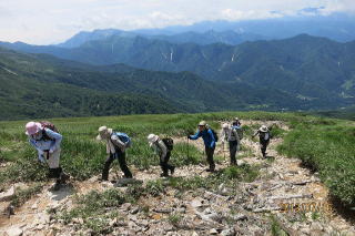 あと一登りで、頂上で、昼食との事、長丁場の頂点が見えてきた。もうひと頑張りだ。 |
