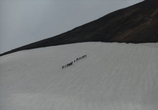 いよいよ最高峰旭岳に取着くわけだが、直下に大きな残雪の斜面を控えている。