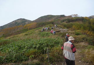 富士見平まで皆さんの足並みが快調で、ここまでのコースタイムが30分早く、予定を変更して1日目に山頂まで行くことに決定。