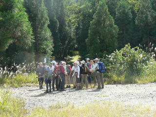 いよいよここから大里峠を目指します、栗を拾いながらの峠道ですが途中崩落箇所があり4~5mの泥壁を登らなければならないがトラロープが掛っていた。緊張したが全員何故か楽しそうに通過した。沢に下りて橋を渡る事4回を数えた。