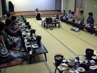 とても快活で愉快な仲居さんから格別の”おもてなし”を受けて、夜の部は大盛り上がり。とても賑やかに過ごさせて頂きました。私たちのメンバーからも、民謡や踊りも飛び出して楽しい宴会でした。
