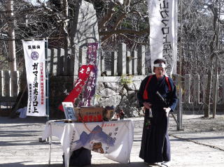 筑波山神社にもう一度寄り、お礼参りと来年も元気で登山が出来ますようにとお願いして後にしましたが、バスに向かう途中でガマの油売りを見つけました。時間がないので口上は聞けませんでしたが、あれは何に効く薬だったのでしょうか。 |