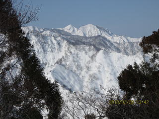 積雪期では申し分無い展望を広げる山頂です。三角点は深い雪の中です。 |