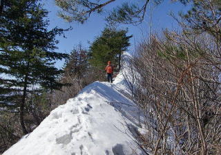 細い尾根歩きも有り少し怖い所も有りますが2つのピークを越え最後の登りをゆっくりと登ります。
