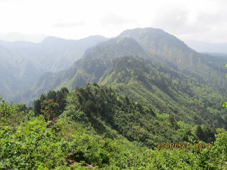 本日最終の北峰、天狗の庭に腰をおろし、辿ってきた稜線の峰々を天狗気分で眺めました。 |
