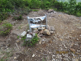 何時、立てたのか金属製の新しい山頂の看板が歪んでいた。これも豪雪の影響か。