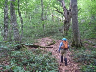 やがて林相がブナの木に変わり、ブナ台に到着。滝倉の水場で休憩をとり、それから登ること50分ほどで、倉方に着きました。