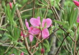 山頂からは急なガレ場下りが続くが路傍の花が美しい。 |