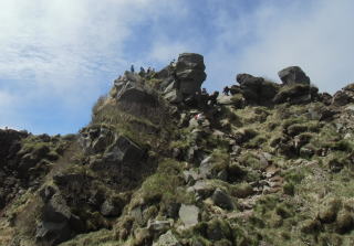 山頂直下はストックをしまい、両手を使えるようにしておいた方が良いと思う。 |