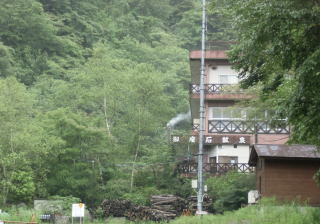 登山口から先ずは福ちゃん荘(他人とは思えない)に向かう。登山道は静かな樹林帯だが、沿ってある舗装道路でも登れる。 |
