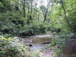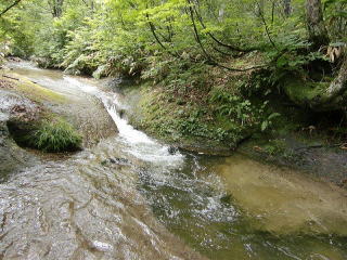 暑い時の綺麗なブナ林の中の沢歩き、水も綺麗で虫も余り居なく滑状の川床は歩き易く気持ちが良いです。
