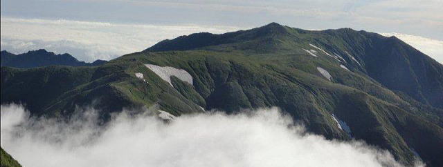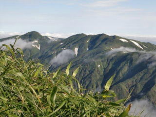 草履塚の登りより飯豊山を瑠璃帰り見る |