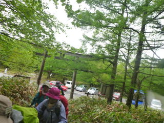 「将軍平」から同じ登山道を下ったが、足も揃って順調に七合目登山口へ到着した。途中、周囲全面に苔が敷き詰められたシラビソの森に、霧がゆったり流れ、幽玄な雰囲気の中ゆっくり下山できた。 |