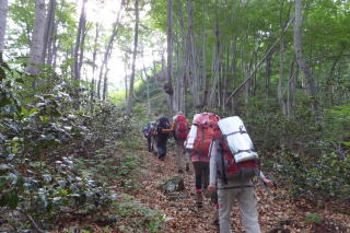 昨日ほどではないが、寝起きの身体に鉾立峰と大石山への登りは少々応える。 |