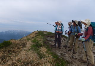 “頼母木山”への分岐点大石山でリュックをデポし、頼母木山に向かう稜線を歩く(プチ飯豊尾根歩き)。
