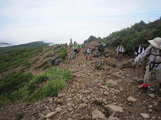 お昼には山頂は一面ガスに包まれて視界不能だったと、実に強運に恵まれた山行だったのでした。 |