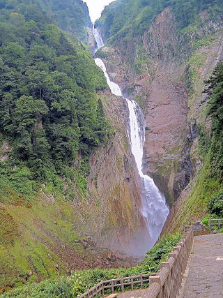 下山後には車道を数分歩き、4段に折れるも落差350mの日本一を誇る称名滝見学のため展望台へ。
