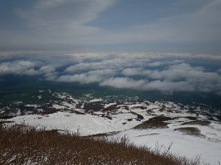 鳥海山は、全山が一枚バーンです。見渡す限りの大雪原を滑るのは実に爽快でした。