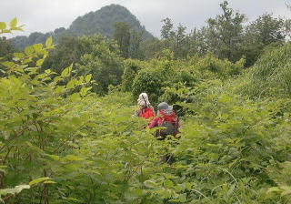 田んぼや畑の跡と思われる所を横切り尾根に取り着きます。 |