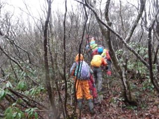 狭い尾根を登りまります |