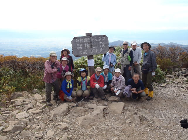 集合写真後あの磐梯山へと気合を入れ頑張ります。 |