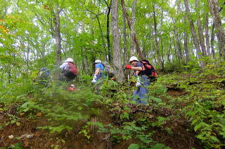 まだまだ緑濃いすがすがしい登山道を 進みます。 まだまだ 穏やかな道です。 |