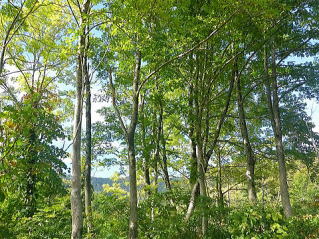 | 秋の空のブナ林 |