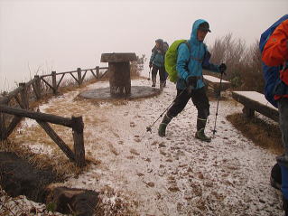 体が温まって来た5合目を過ぎた辺りで雪が雨に変わりました。