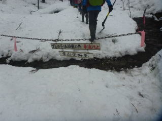暫く歩くと雷山登山口(1合目)の標識が立っている。さあ〜ここから冬の里山登山の出発です。みんなワクワクと胸躍らせているようだ。