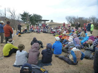 山頂で集合写真を撮り、ロープウェイ山頂駅でトイレタイムの後、本部の待つ大平園地へ向かう。 |