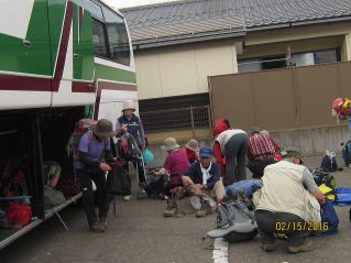 登山靴を脱ぎ、出発までしばし歓談 |