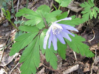 この辺はイワウチワが群生しています。柔らかなピンク色の花びらが優雅でずっととどまっていたい気分です。