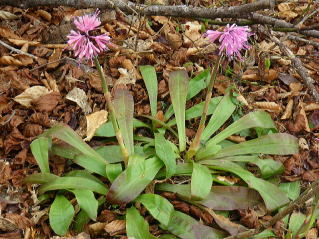 冷たい清水に喉の渇きを癒し、立派なオオイワカガミの花を見ながら最後の急坂を登り終えると下権現堂山のピークに到着しました。 |