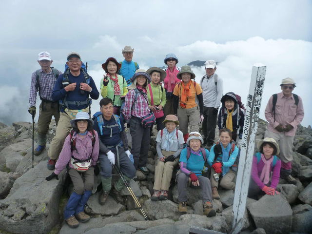 蓼科山頂上で集合写真 |